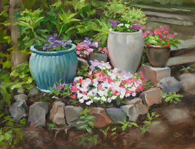 This one started as a plein air study this summer but the bottom rose was just a red smear. I gave it some definition without over painting the piece.